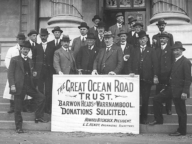 Doch der Bau der geplanten Strasse kostet Geld. Viel Geld. Unermüdlich warb Hitchcock um Verbündete und um Spender. Am 22. März wurde in Anwesenheit von 500 Personen der Great Ocean Road Trust gegründet. Der erste Präsident hieß Howard Hitchcock. Seinem unermüdlichen Einsatz ist es zu verdanken, dass der Straßenbau als Denkmal für die viktorianischen Soldaten bald zu einem nationales Anliegen für ganz Victoria wurde. Seine Weitsicht, dass diese Strasse einst auch eine Touristenattraktion, wie die Riviera in Frankreich, die San Franzisko Road oder der Bulli Pass in NSW werden kann, war Anlass beim Bau auch gleich das Umfeld mit entsprechender Infrastruktur, wie Parks, Lookouts und touristische Unterkünfte zu berücksichtigen.