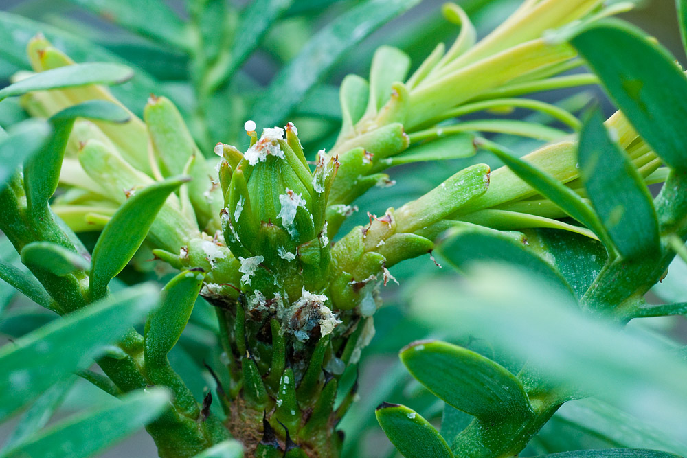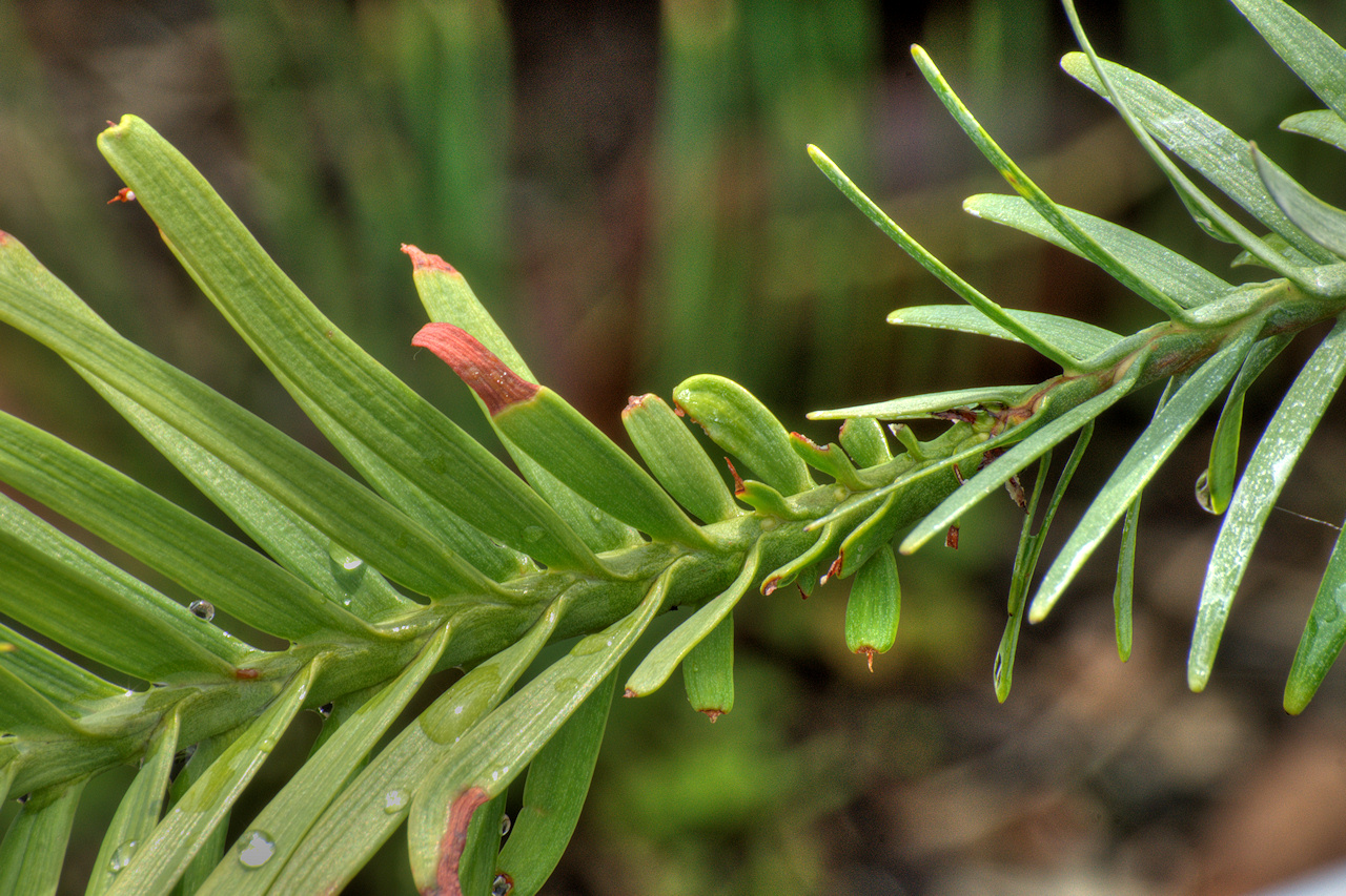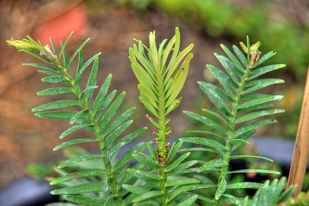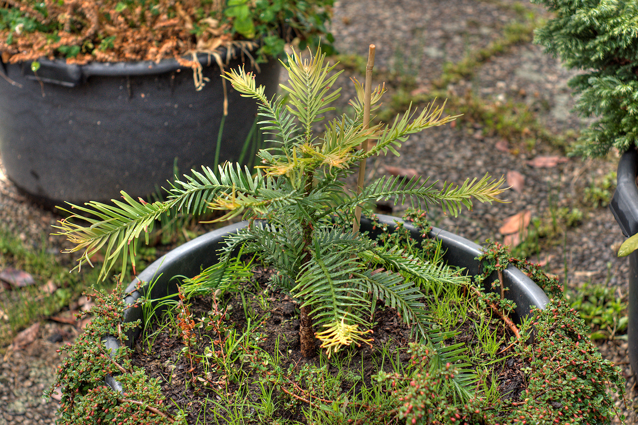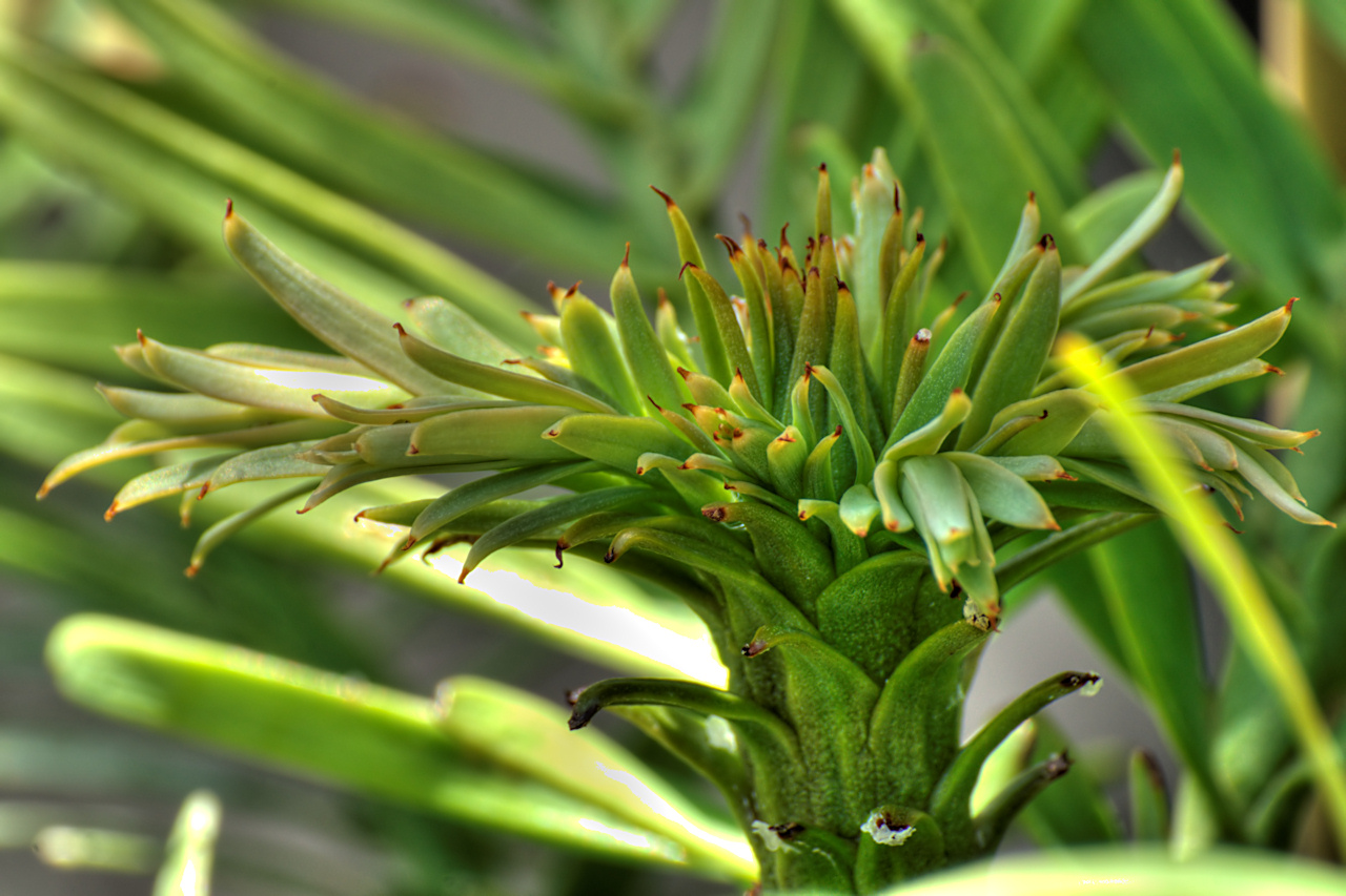 Es handelt sich um eine sog. Wollemie - ein Nadelgehölz - aus den Blue Mountains in Australien. Die Familie dieser Art galt lange Zeit als ausgestorben und wurde Mitte der 1990er Jahre entdeckt. Nun darf ein kleiner Ableger dieser bedrohten Pflanzenart als lebendes Fossil meinen Garten schmücken.