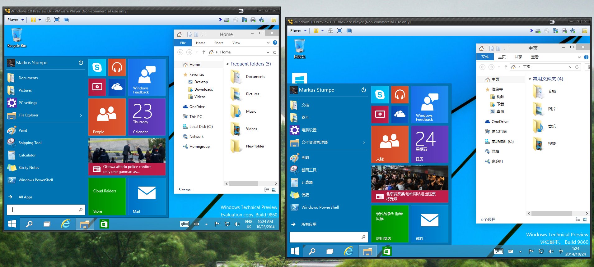 Windows 10 - Technical Preview in englisch und chinesisch.
