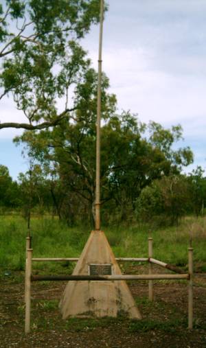 Ein monumentales Denkmal, würdig für einen wirklichen Helden. Als John Flynn 1951 starb bat man das Warumungu Volk um einen Stein von ihrer heiligen Stätte, auch Devils Marbles genannt. Der Stein, der sich über 20 Tausend Jahr im Besitz der Ureinwohner befand, wurde gern zu Ehren und zum Gedenken dieses John Flynn gegeben. Über 400 Kilometer lang war die Transportstrecke.1952 kam dann noch die Tafel dazu. Dort steht:
