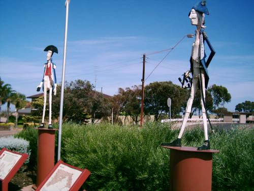 Die beiden skurrilen Figuren am Flinders Lookout in Whyalla sollen an Flinders und Freycinet erinnern. Auf einer Tafel war zu lesen, das Flinders von 1803 bis 1810 ein Gefangener der Franzosen auf Mauritius war. Auch die Veröffentlichung seines Buches über Terra australis 1814 wird erwähnt.