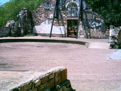 Die Reste der Town Hall und das wie durch ein Wunder verschonte Kircheneingangstor sind Zeugen des Zyklons Tracy.
