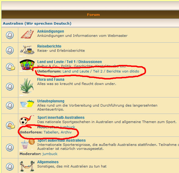 wir haben nun erstmalig die Möglichkeit die Vorzüge von sog. "Unterforen" zu genießen. Es handelt sich dabei um normale Foren, jedoch innerhalb eines anderen.